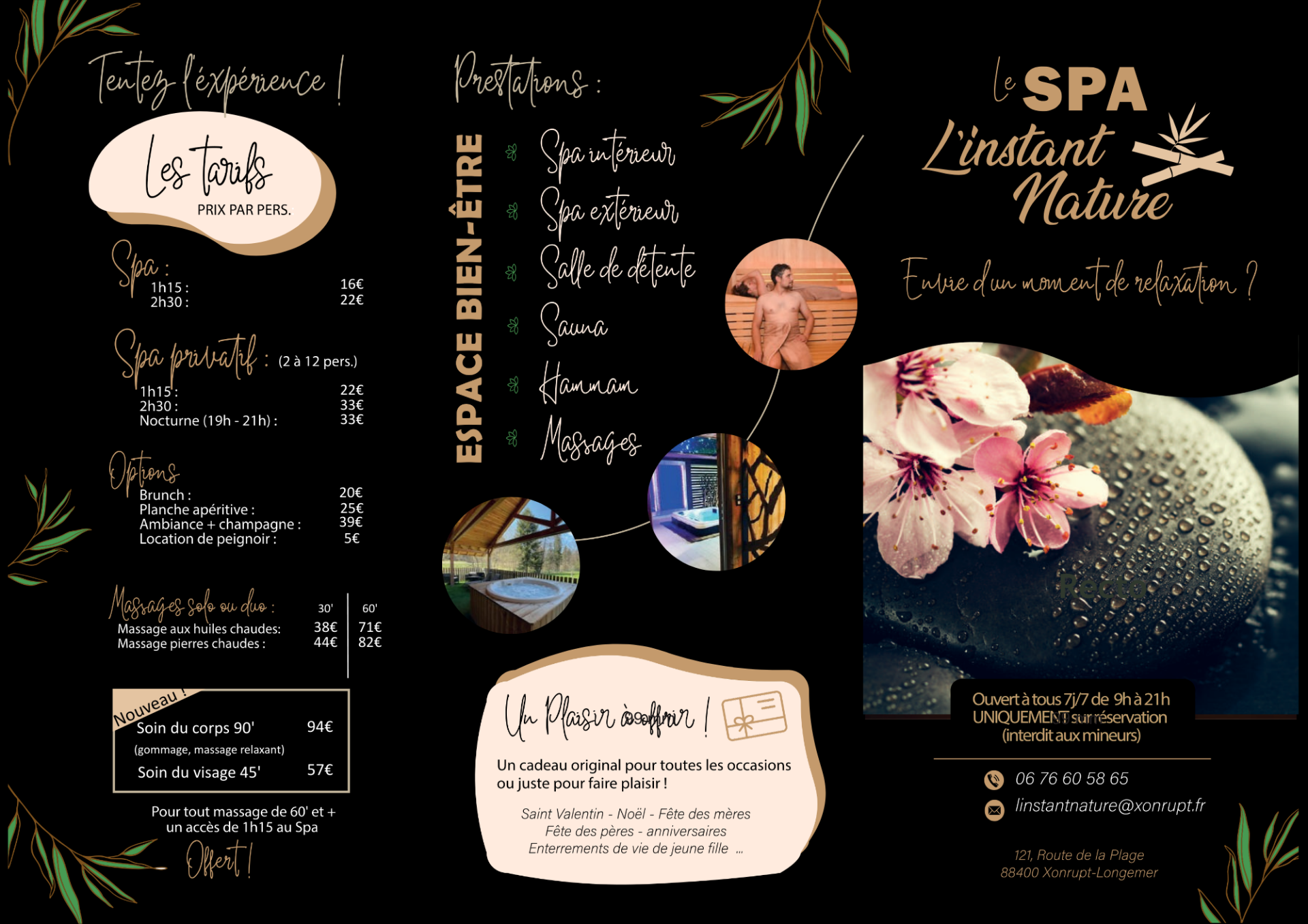 Spa ouvert toute l'année, du lundi au dimanche de 9h à 19h, à partir de 16 ans.